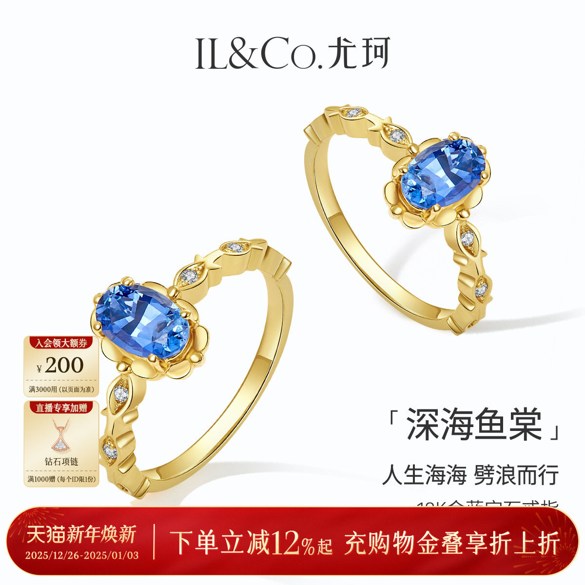 ILCO尤珂「深海鱼棠」18k金镶嵌天然蓝宝石戒指复古轻奢彩宝女款