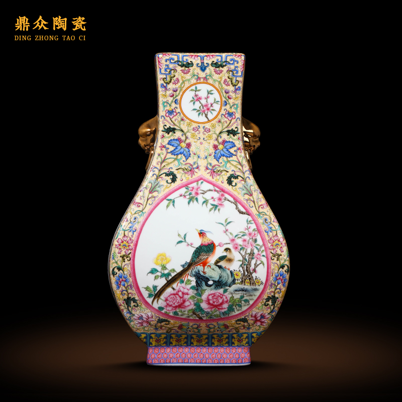景德镇陶瓷器花瓶花插珐琅彩凤凰仿古中式客厅卧室摆件送底座包邮