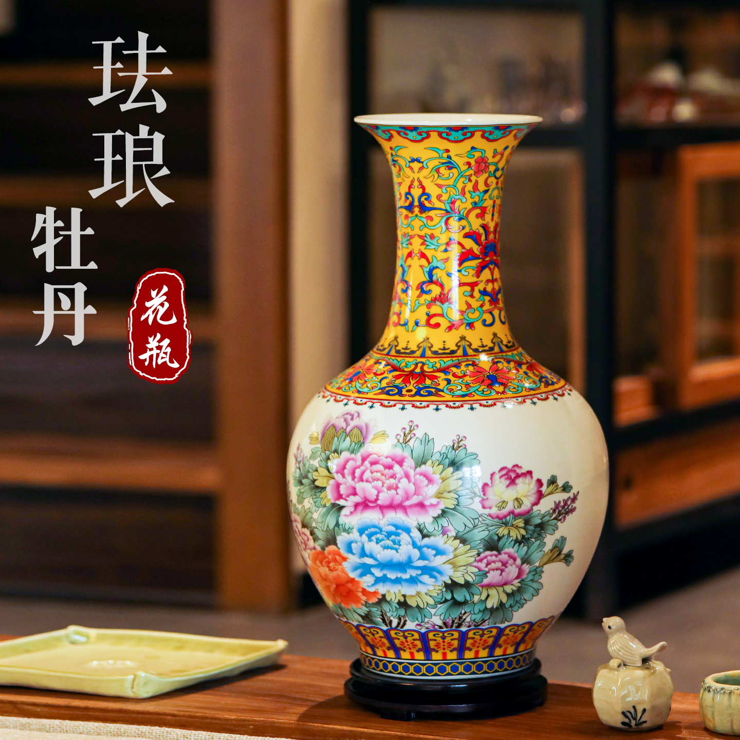 新中式珐琅彩花瓶陶瓷装饰花瓶工艺品瓷器桌面摆件仿古办公室家具