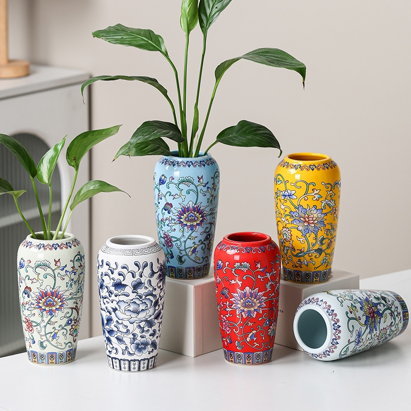 现代中式珐琅彩陶瓷花瓶客厅餐厅装饰品摆件插花桌面干花装饰花盆