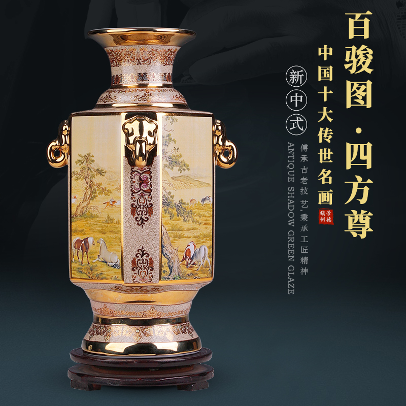 景德镇陶瓷花瓶玄关摆件仿古官窑珐琅彩瓷器古董收藏品方形老物件