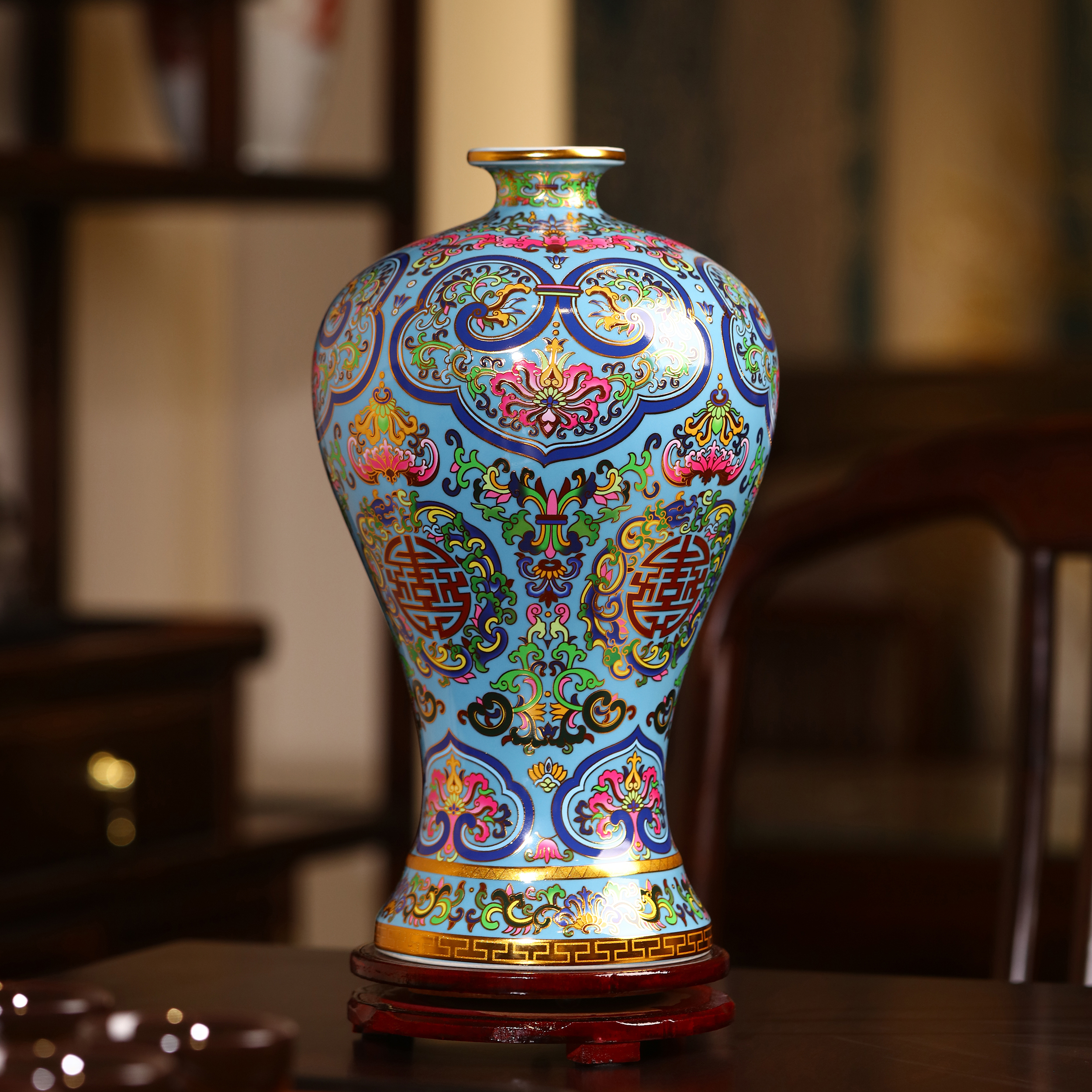 景德镇珐琅彩宫廷风陶瓷花瓶家居博古架电视柜书桌面摆件花器中式