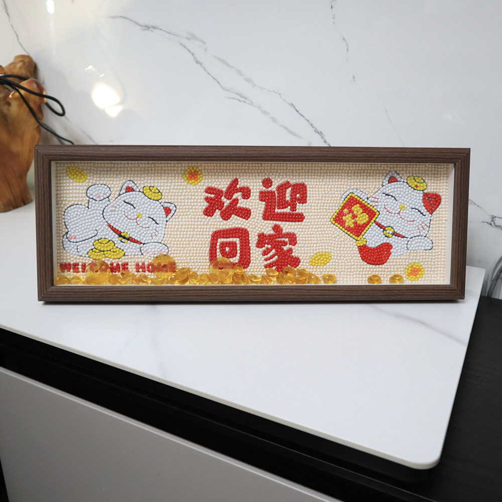 带框钻石画2025新款欢迎回家客厅满钻diy贴钻点钻十字绣字画摆台