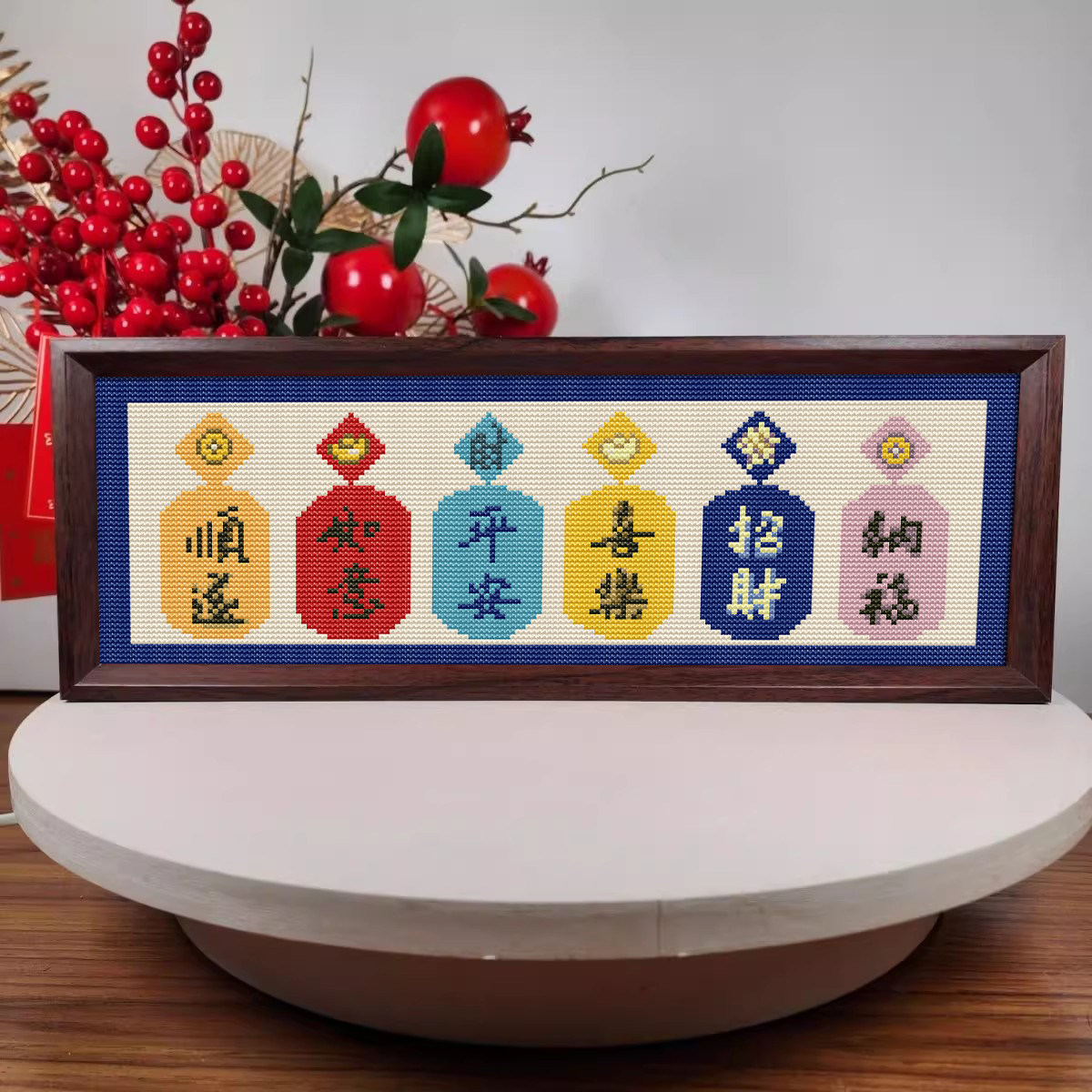 【字画】十字绣新款线绣带框摆台祈福文字喜庆治愈系手工自制刺绣