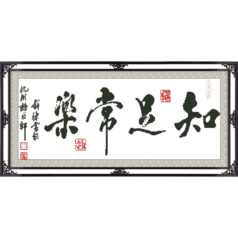 知足常乐十字绣字画书法客厅只绣字书房家用文字线绣新款2022年