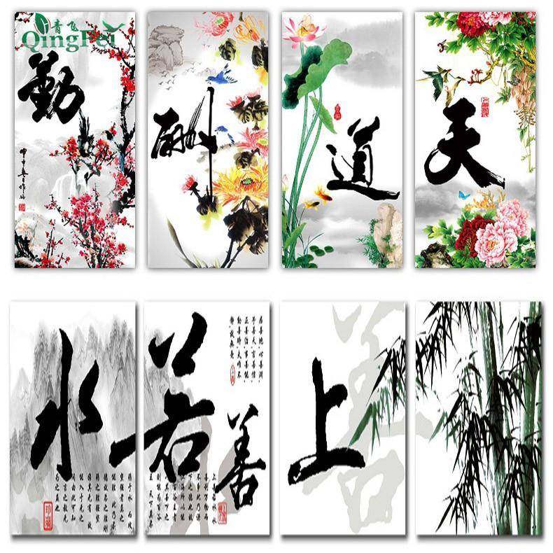 青飞精准印布上善若水三联画十字绣天道酬勤四联画十字绣字画客厅