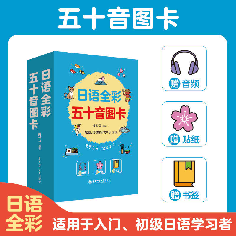 日语全彩五十音图卡(赠音频、贴纸、书签) 日语入门启蒙小白初学者