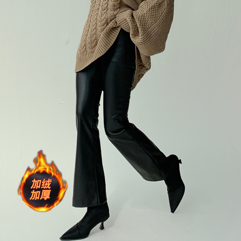 【女王驾到】时髦感加绒皮裤女 秋冬哑光皮裤显瘦修身喇叭裤不紧
