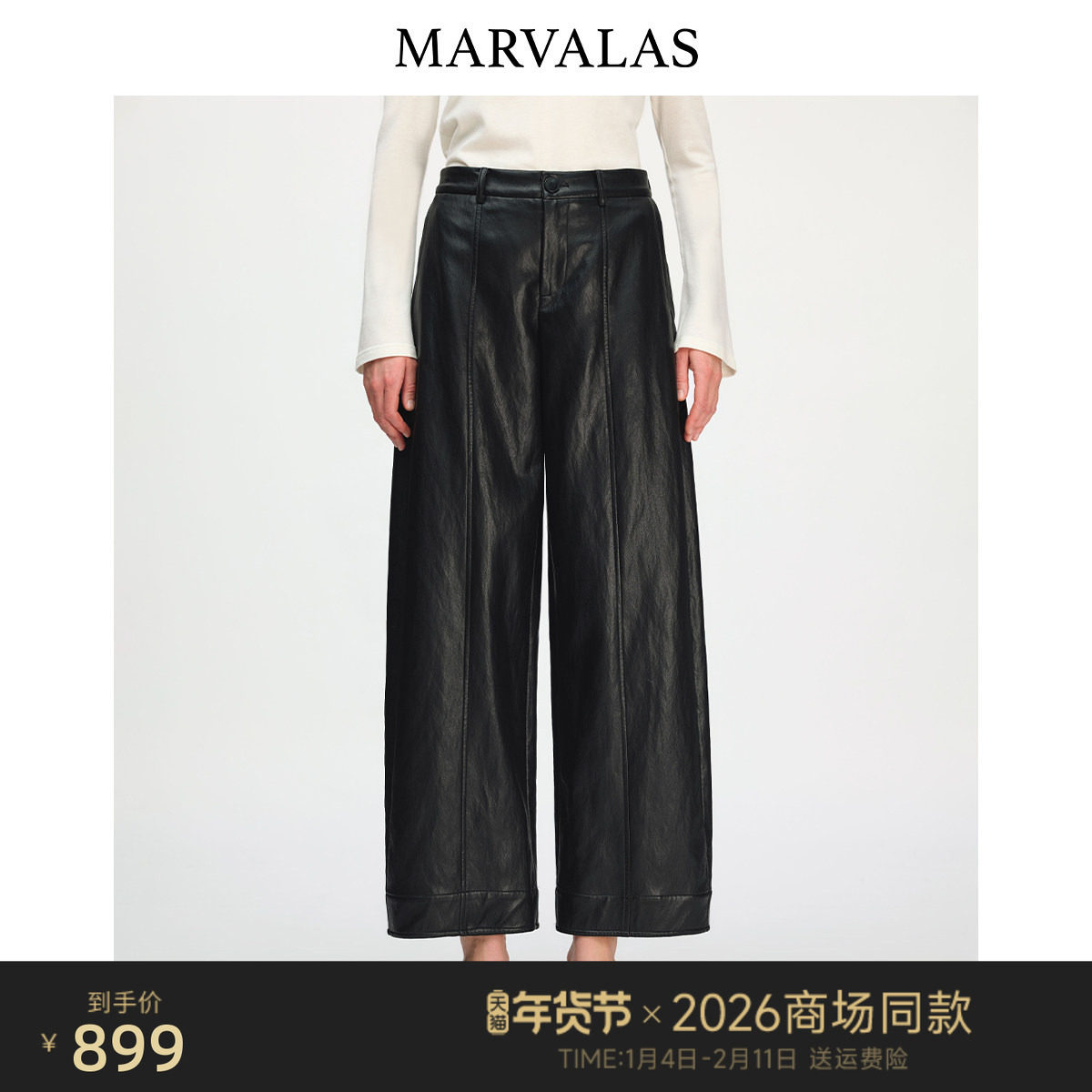 【商场同款】曼德诗2026春季新款休闲裤气质PU哑光皮裤女M61T3814
