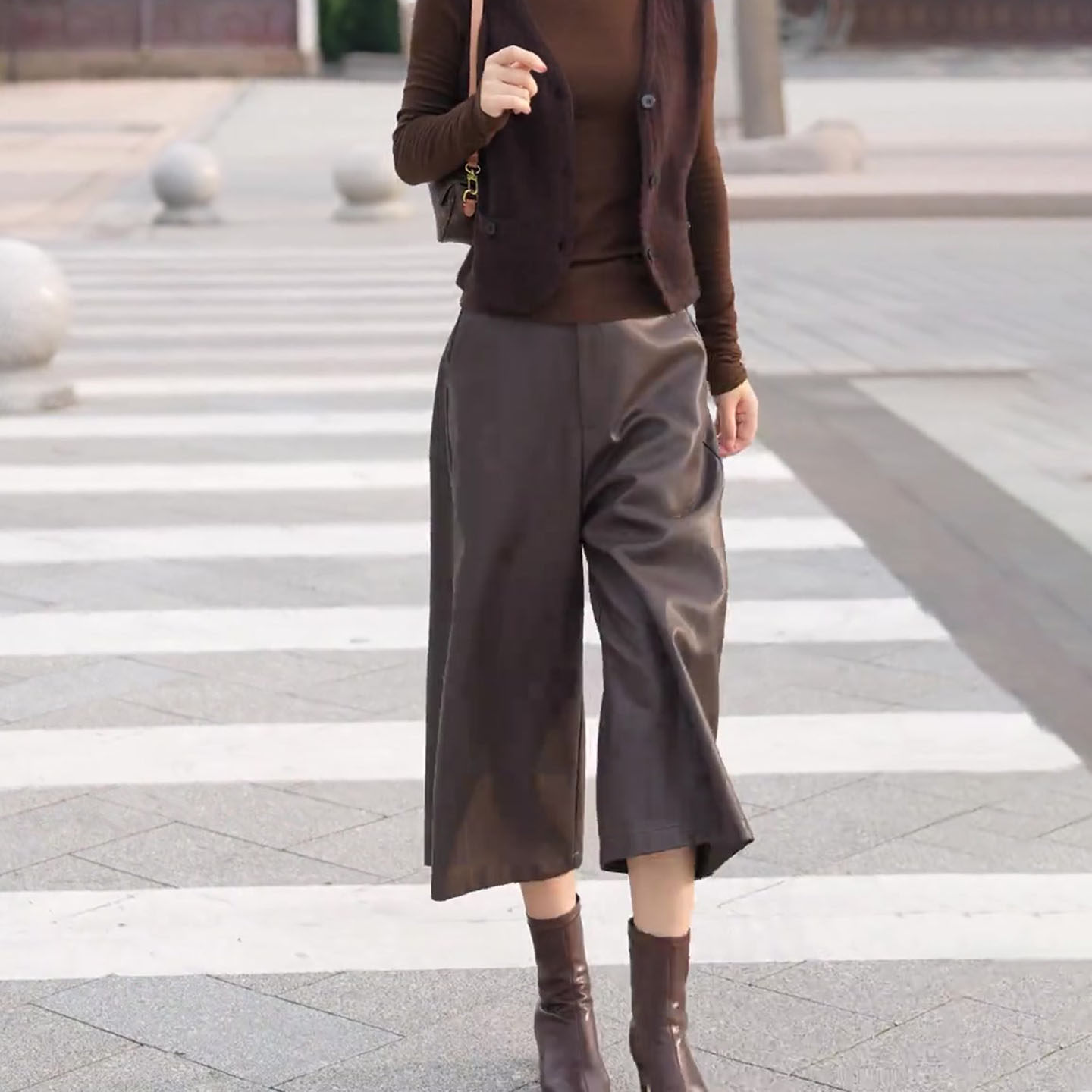 咖色七八分哑光皮裤女2025秋季流行爆款高腰宽松时尚百搭PU阔腿裤