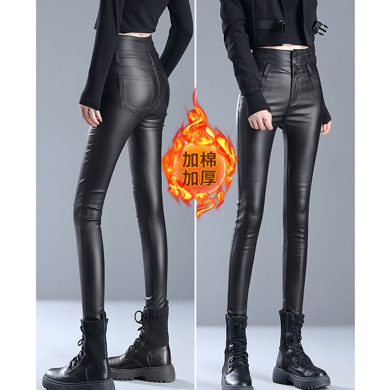 - 皮裤女加绒小脚裤秋冬