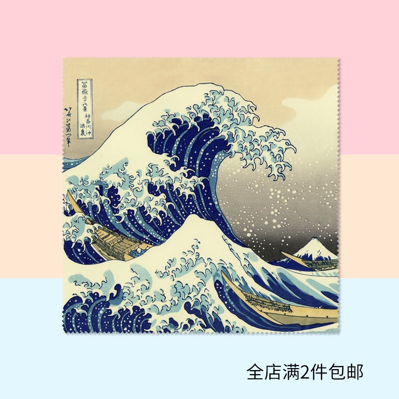 源本原创设计 时尚印花手机数码巾 ins风 眼镜布 擦屏布 神奈川浪