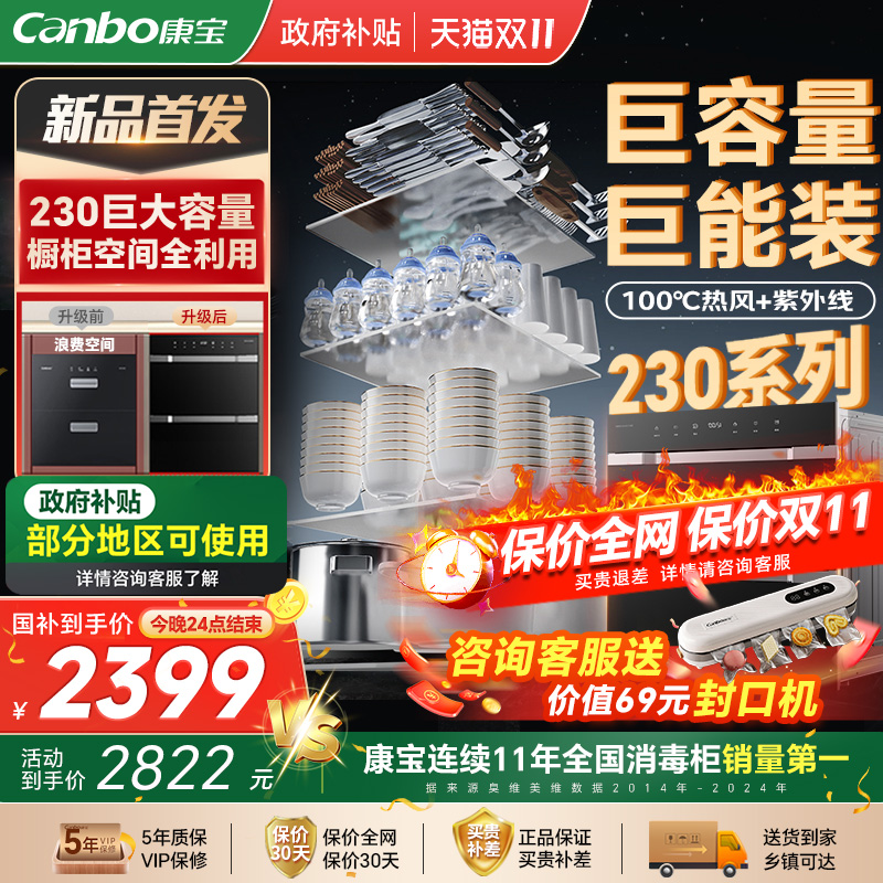 康宝巨量消毒柜嵌入式家用餐具碗筷烘干一体碗柜大容量不锈钢新款