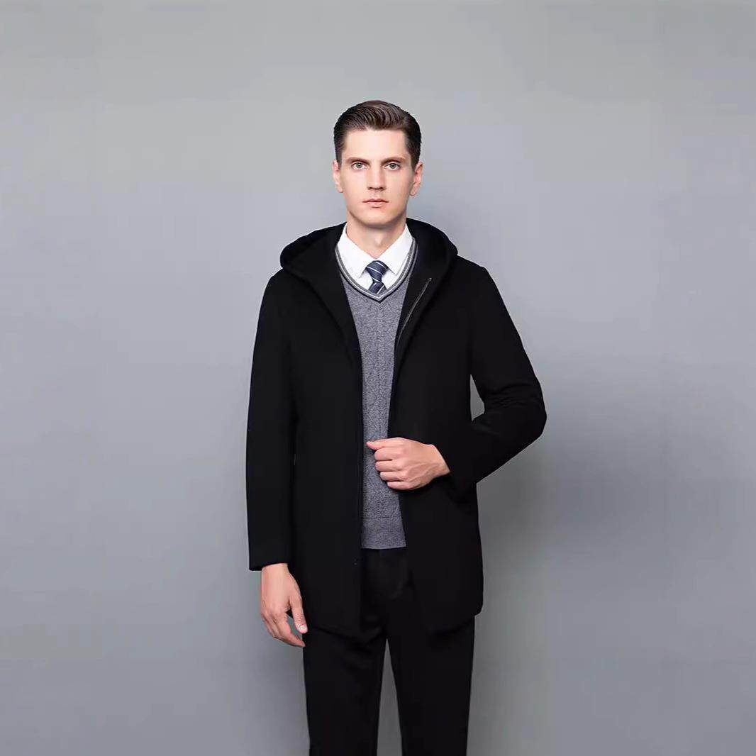 羽绒中内胆羊绒大衣男装中长款领老年尼82071-OP克服纯羊毛呢翻外