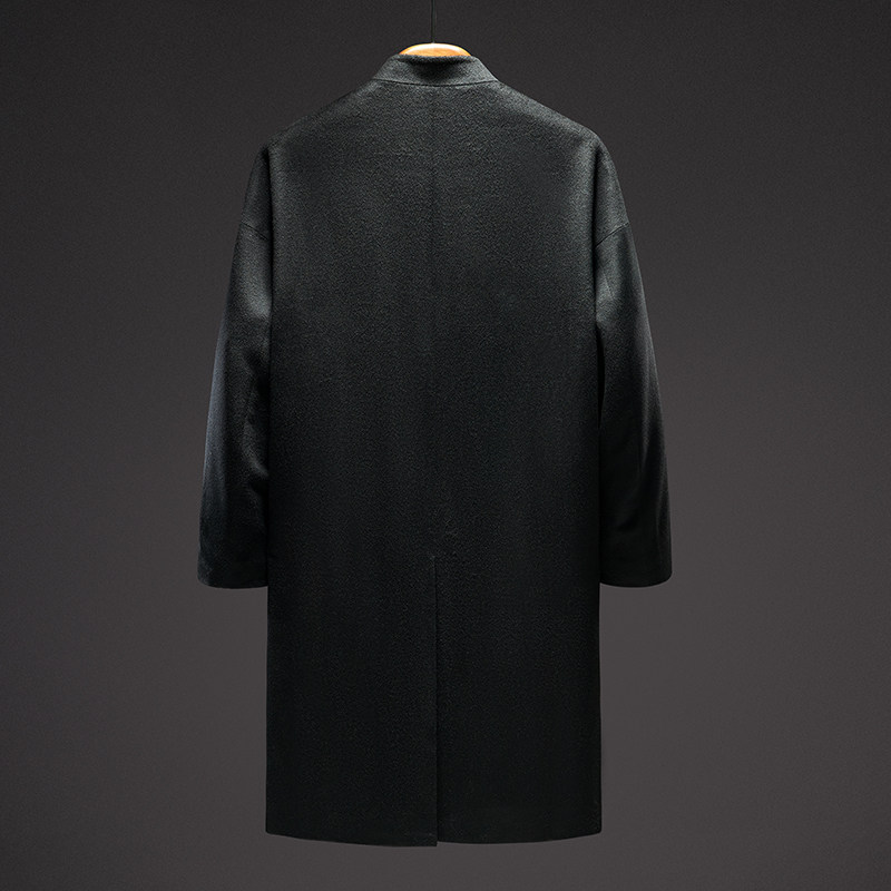 唐装男中老年冬季长版羊毛尼盘扣大衣中式立领休闲中国风高档外套