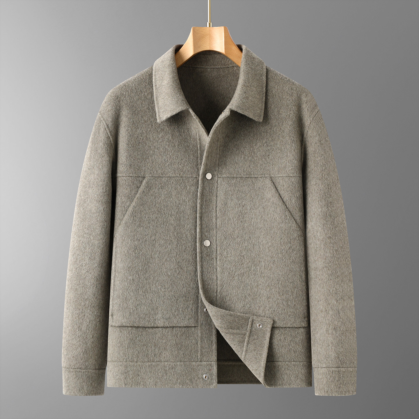 轻奢商务双面羊毛大衣夹克外套男士秋冬季新款中长款爸爸翻领外套