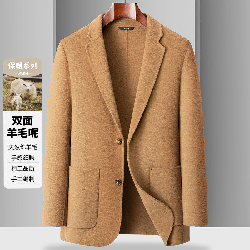 2022新款毛呢大衣羊绒妮子男外套100%纯羊毛双面尼短款呢子大衣男