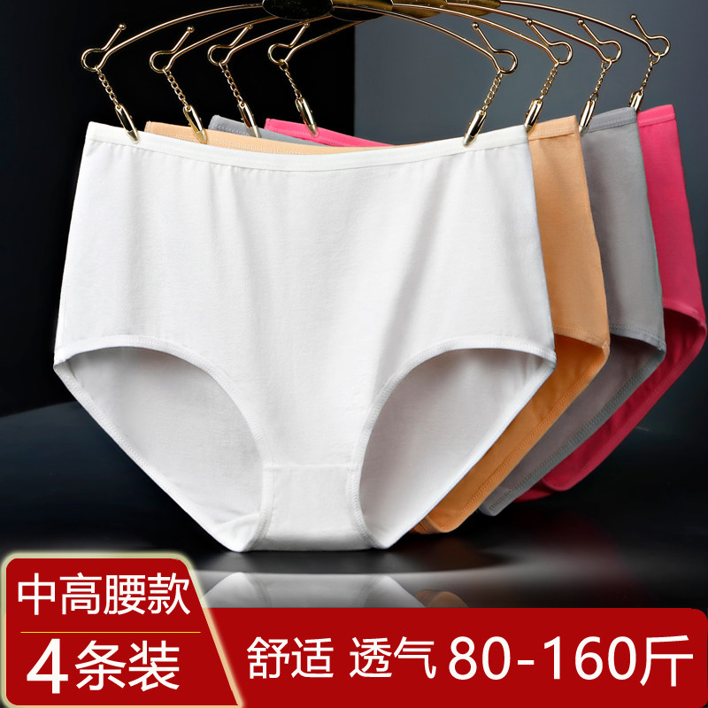 芬腾4条装内裤女棉质中腰透气舒适女士全棉抗菌裆大码女生三角裤