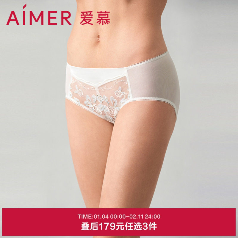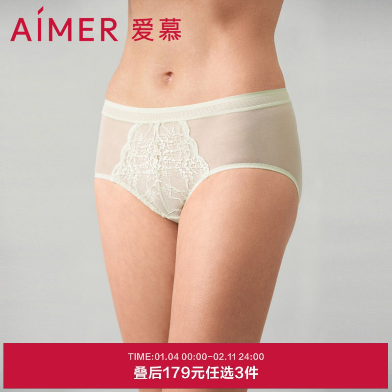 3条179元|爱慕艾莎内裤女棉质底裆性感蕾丝网纱中腰平角内裤