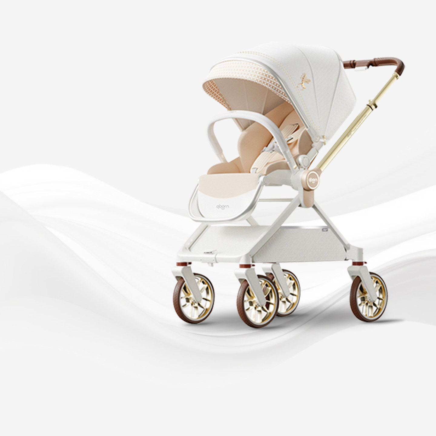 qborn白鹿新生儿小孩米色婴儿车高景观双向折叠轻便避震推车