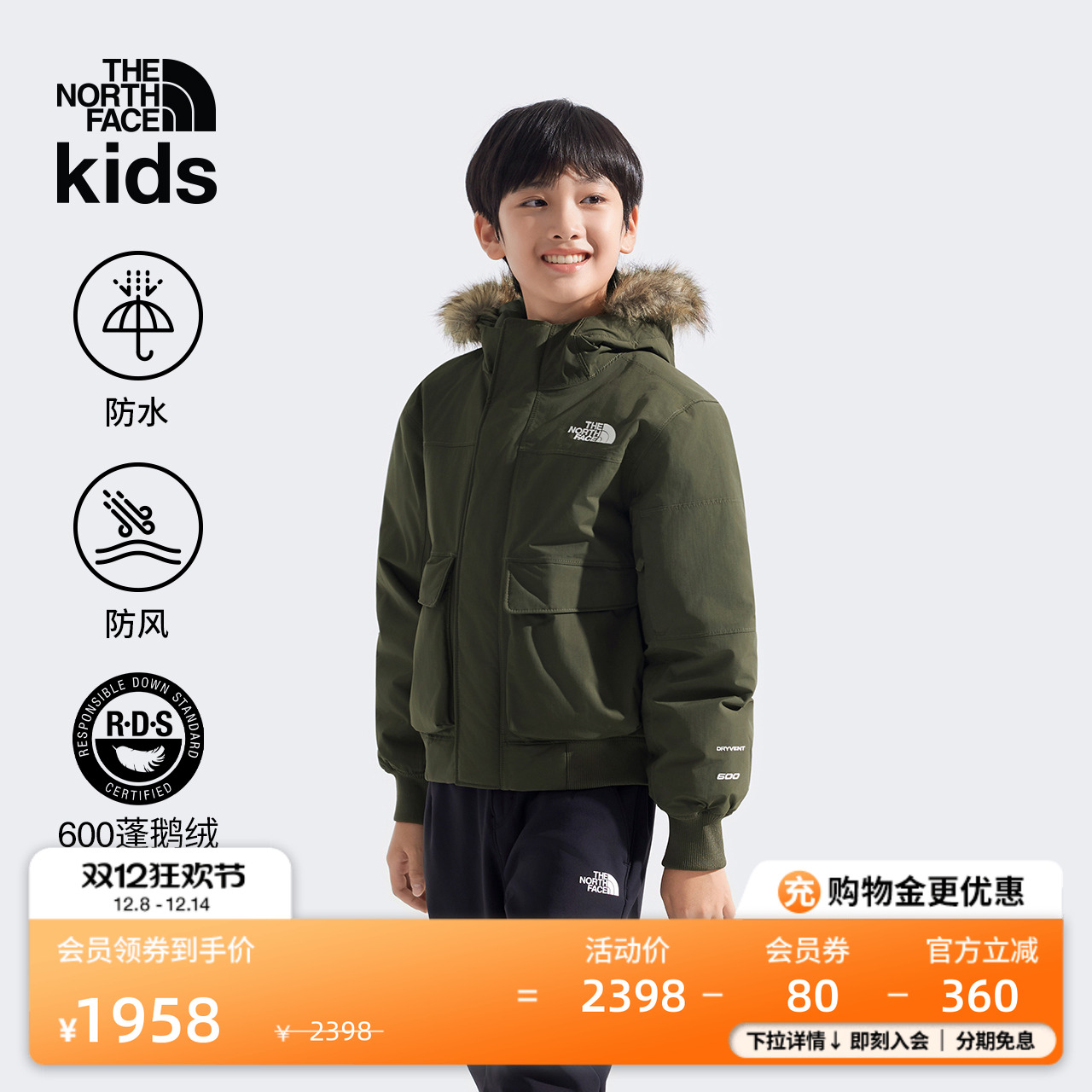 北面儿童羽绒服男童女童保暖鹅绒防泼水户外冬TheNorthFace|8DW1