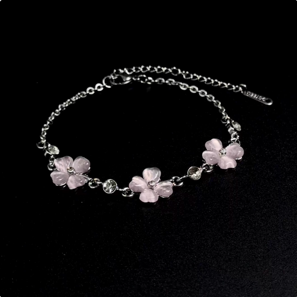 淡粉色四叶草仿猫眼石手链女ins小众设计学生韩版简约手链闺蜜