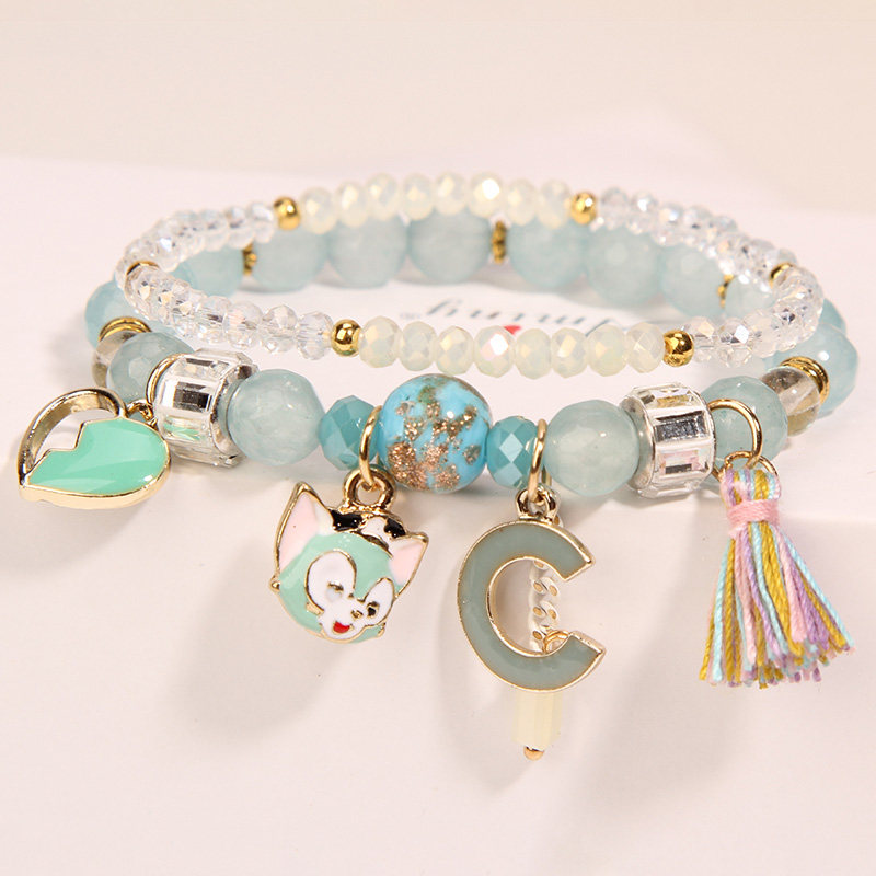 韩版简约学生水晶手链女小猫爱心吊坠闺蜜手环姐妹手串个性手镯潮
