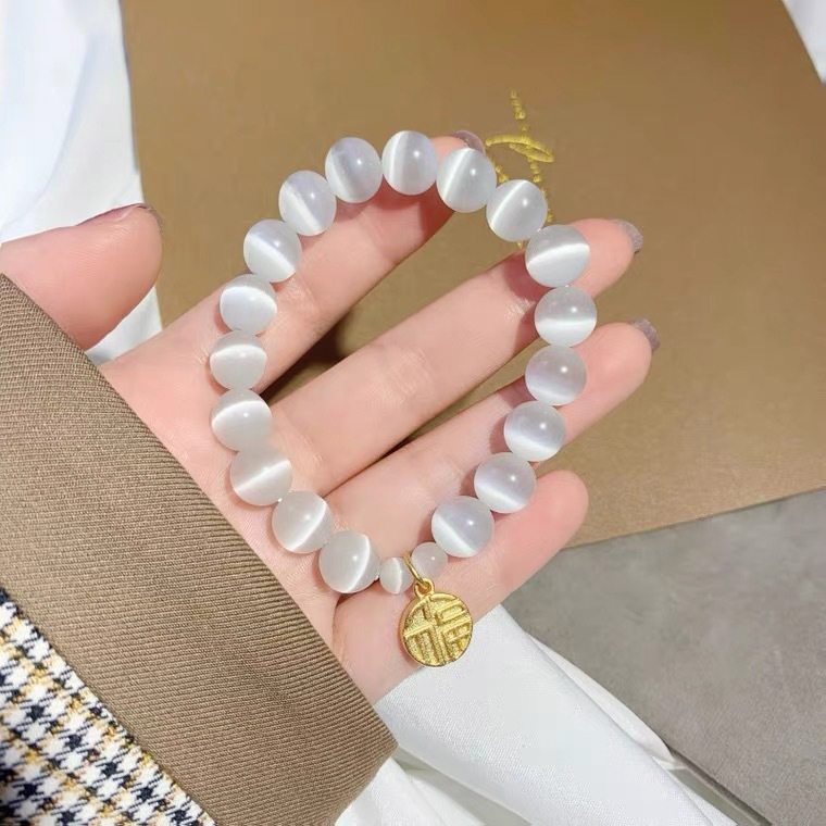 韩版潮流学生个性简约精致轻奢小众猫眼石手串女钛钢福字吊牌手链