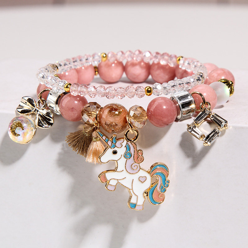 小清新水晶手链女韩版简约学生森系闺蜜手环花朵草莓吊坠儿童手串