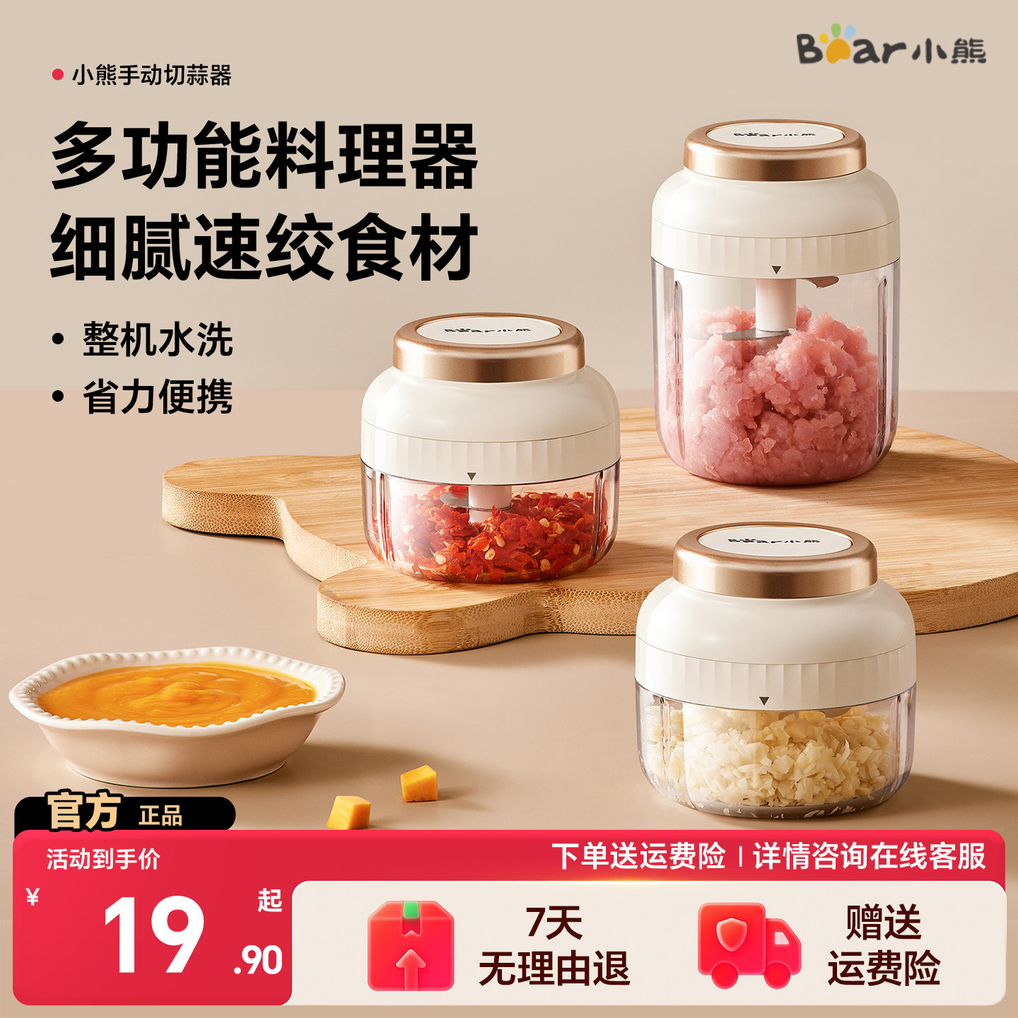 小熊蒜泥神器捣蒜器拉蒜器手动搅碎机绞蒜泥大蒜捣碎器压蒜蓉家用