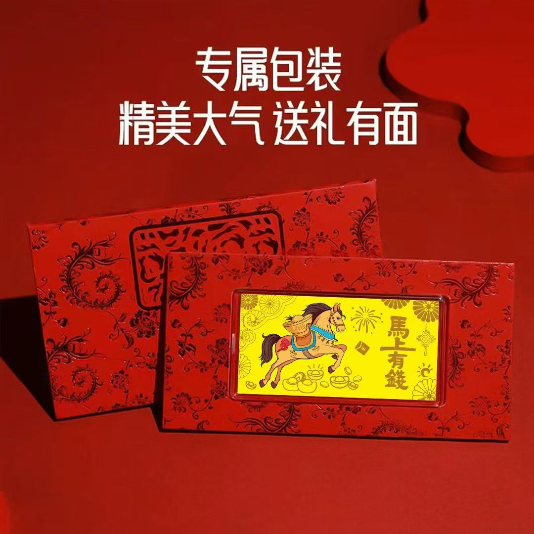 足金生日快乐小金钞票条金片2026马年生肖黄金纪念币贺岁活动礼品