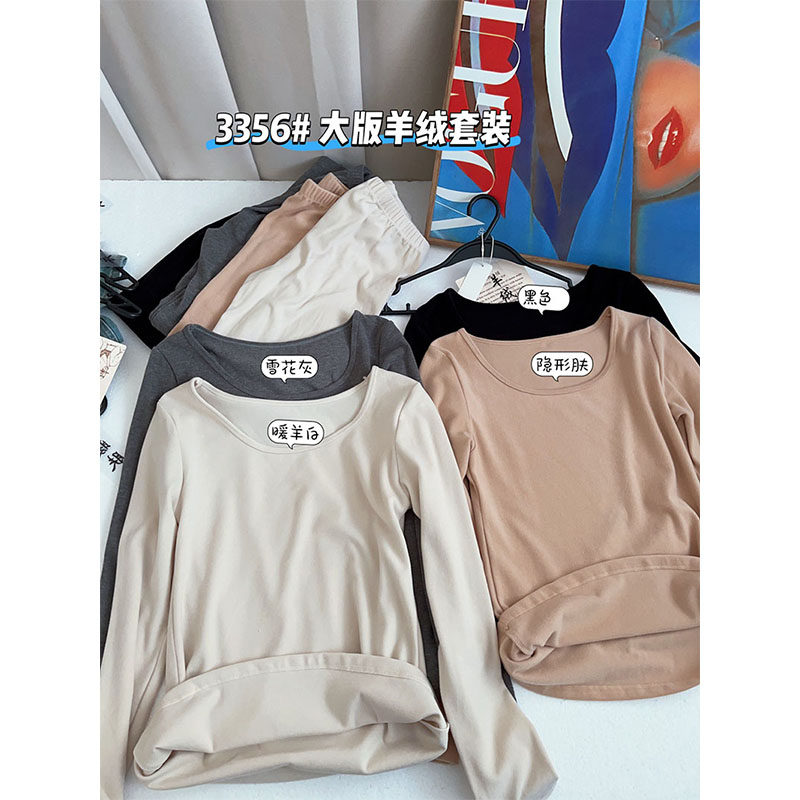 惠芝欣秋冬纯色简约加大版双面绒保暖内衣套装舒适亲肤贴身秋衣裤