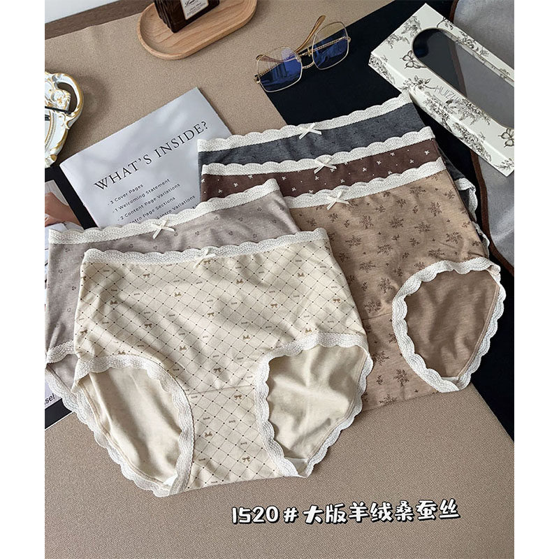 秋冬大版羊绒桑蚕丝印花磨毛内裤女中腰大包臀透气舒适三角短裤头