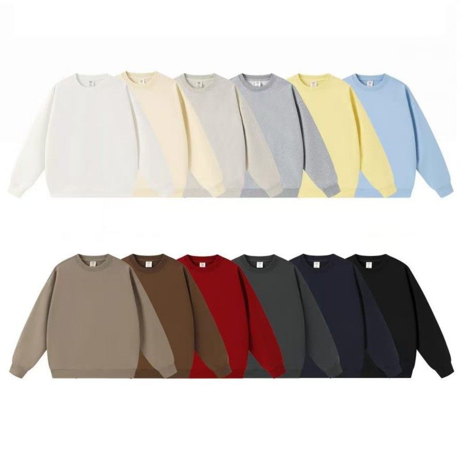 毛圈大版型圆领卫衣男女款长袖小鸡黄纯色轻抓毛落肩宽松重磅潮牌
