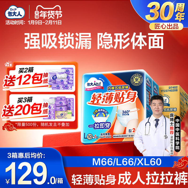 【下拉领优惠】Dr.P/包大人成人纸尿裤XL码老人尿不湿箱装尿布