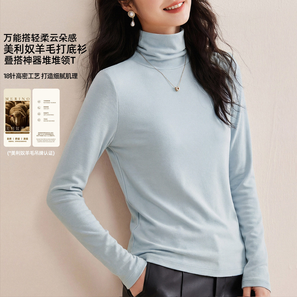 美利奴绵羊毛薄款高领打底衫女2026年新款堆堆领修身内搭针织上衣