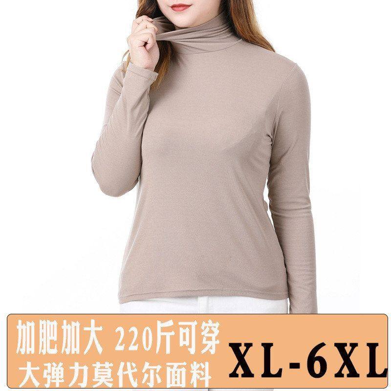 薄款高领打底衫女春秋冬新款莫代尔中领长袖T恤上衣胖mm200斤