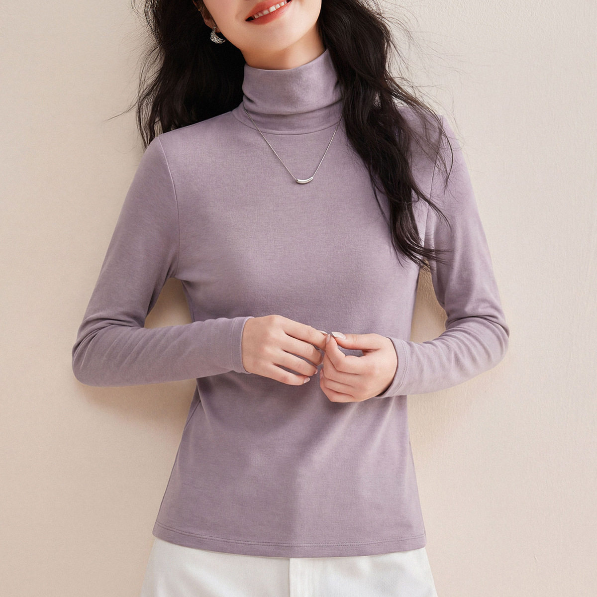 莫代尔半高领打底衫女春秋薄款内穿修身显瘦上衣休闲内搭长袖T恤
