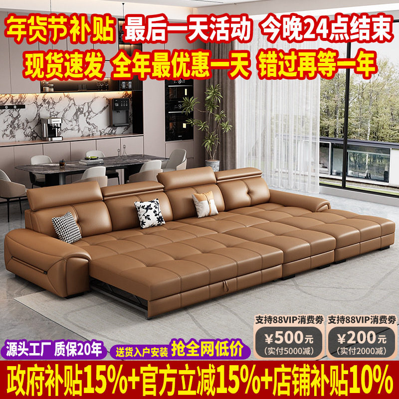 政府补贴劳伦斯真皮沙发床2025新款客厅小户型家用折叠沙发床两用