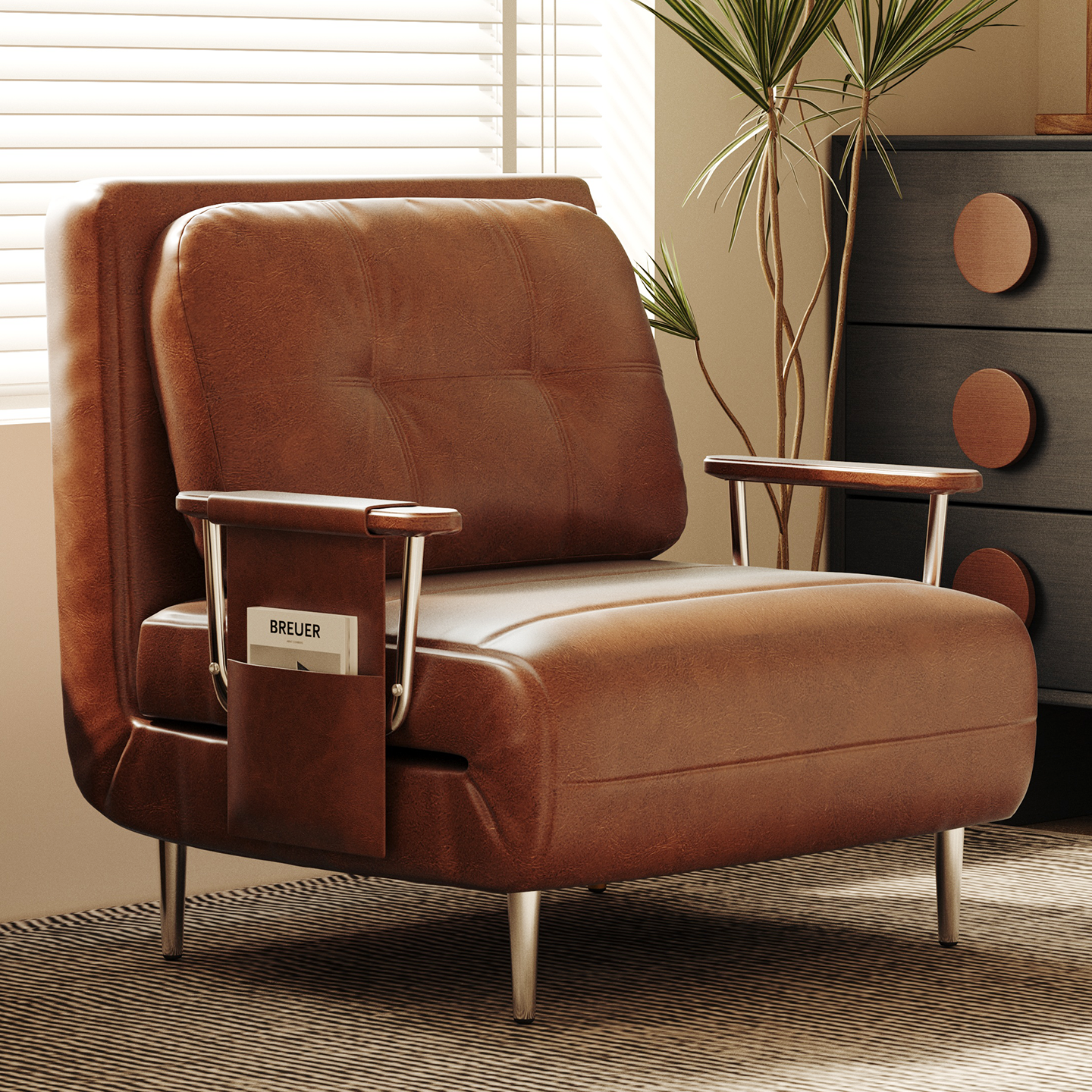 神憩油蜡皮折叠沙发床单人两用家用客厅阳台复古小户型伸缩沙发床