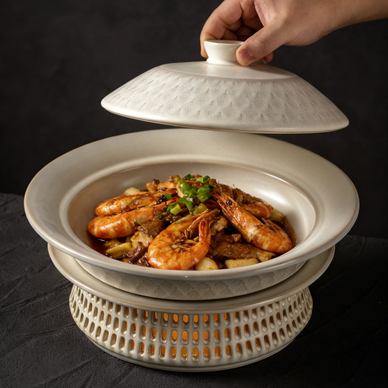 蜡烛加热明炉餐具酒店专用保温热菜汤盘饭店明档菜私房菜盘子带盖