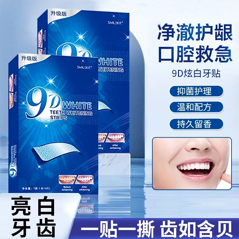 美白9D牙贴牙齿去黄洁白变白清洁遮盖烟渍牙黄神器炫白牙膜贴片