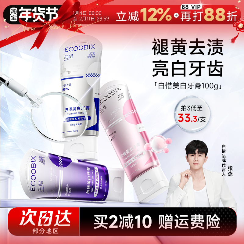 程十安 白惜色修闪耀美白牙膏清新口气亮白牙齿去渍改善牙黄抗糖