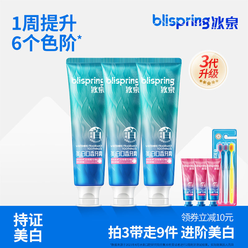 冰泉精华美白口香牙膏清新口气牙齿亮白清洁牙渍牙黄男女专用正品