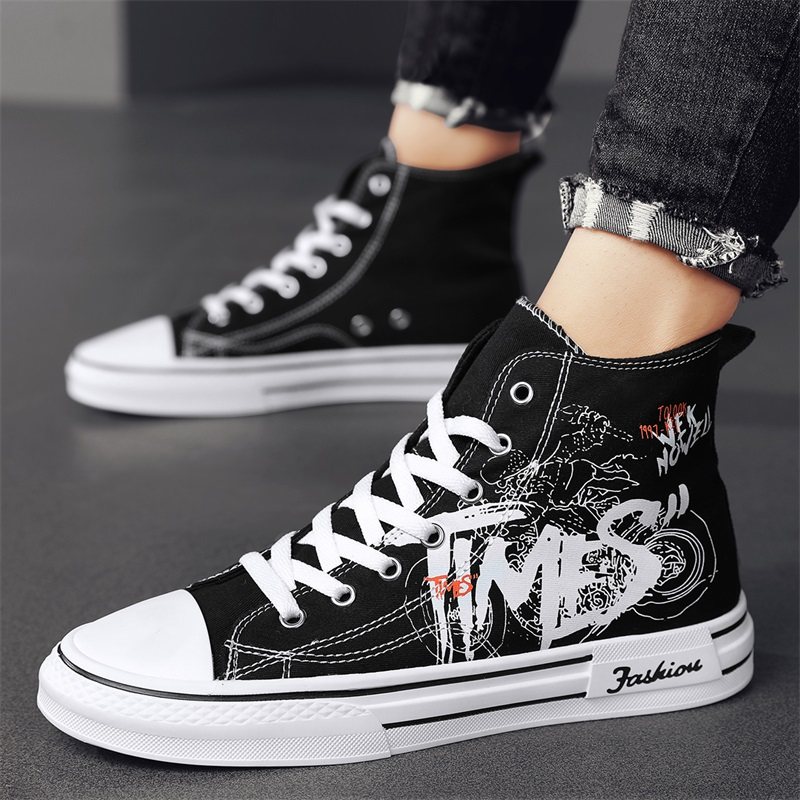 秋季男生休闲透气高帮帆布鞋韩版潮流百搭青少年初中学生黑色板鞋