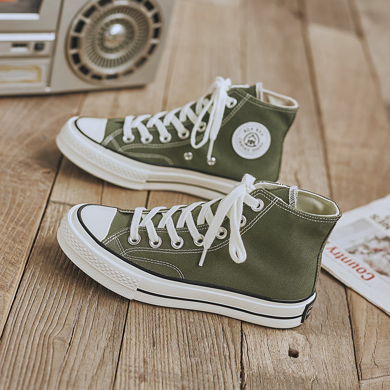 人本高帮帆布鞋男韩版中大童春季高帮鞋男童绿色初中学生休闲板鞋