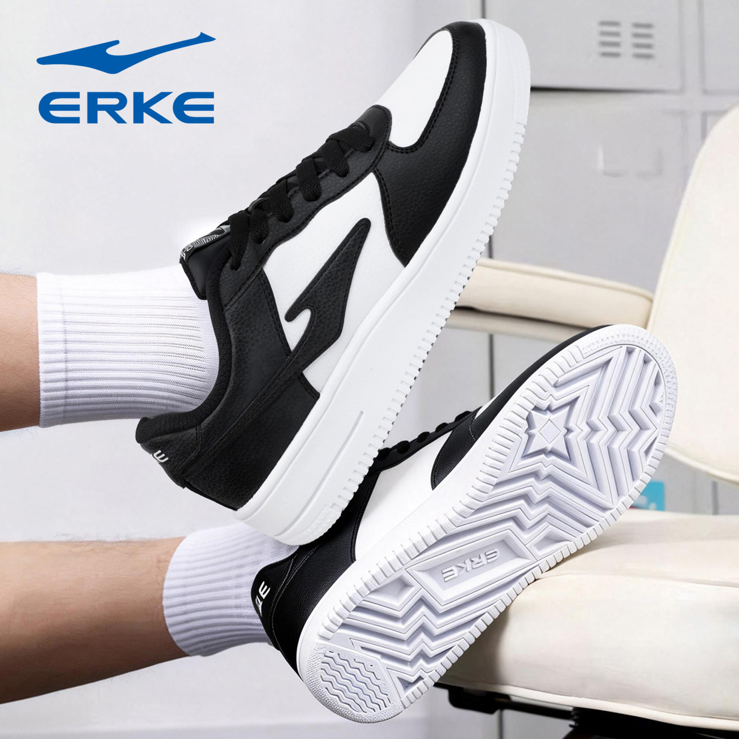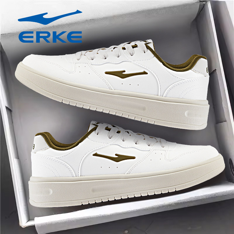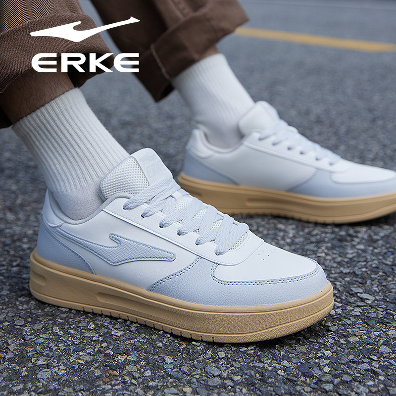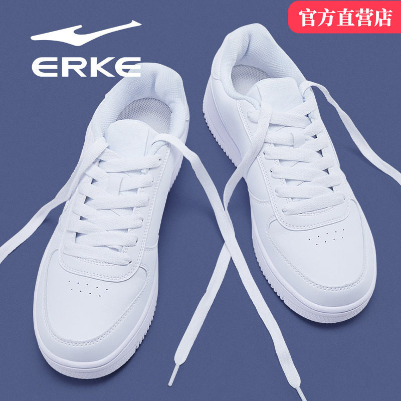鸿星尔克板鞋男鞋春季青少年中学生小白鞋空军一号皮面防水运动鞋