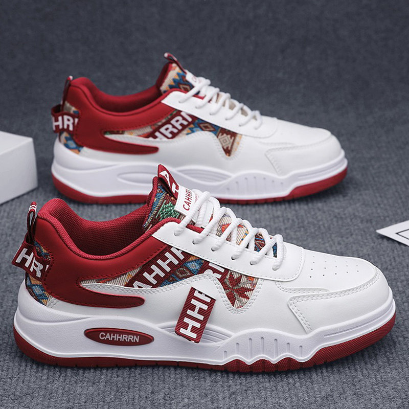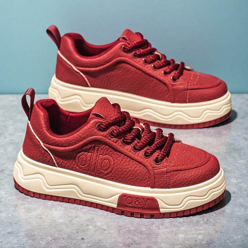 红色休闲板鞋秋冬季男鞋子皮面初中学生男款本命年小众厚底运动鞋