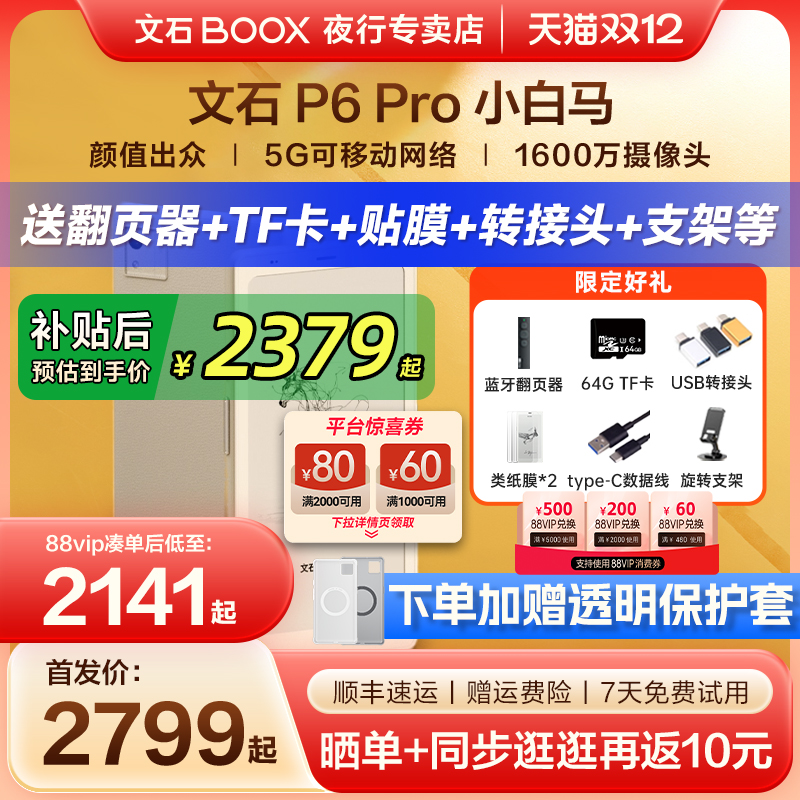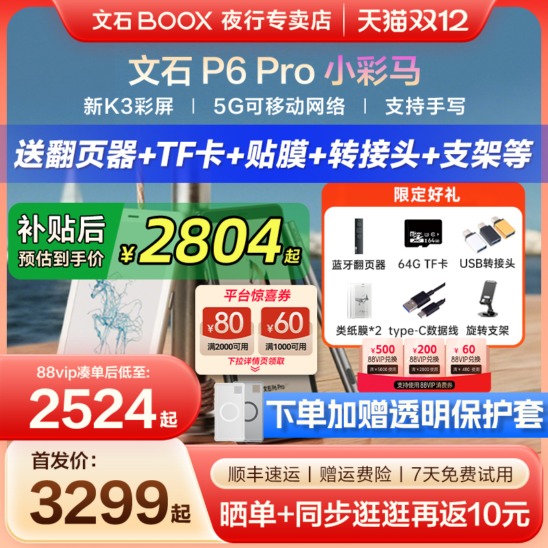 【支持15%国补 送原装皮套】文石BOOX P6 Pro小彩马彩色小白马墨水屏电纸书p6pro电子阅读器护眼手机款阅览器