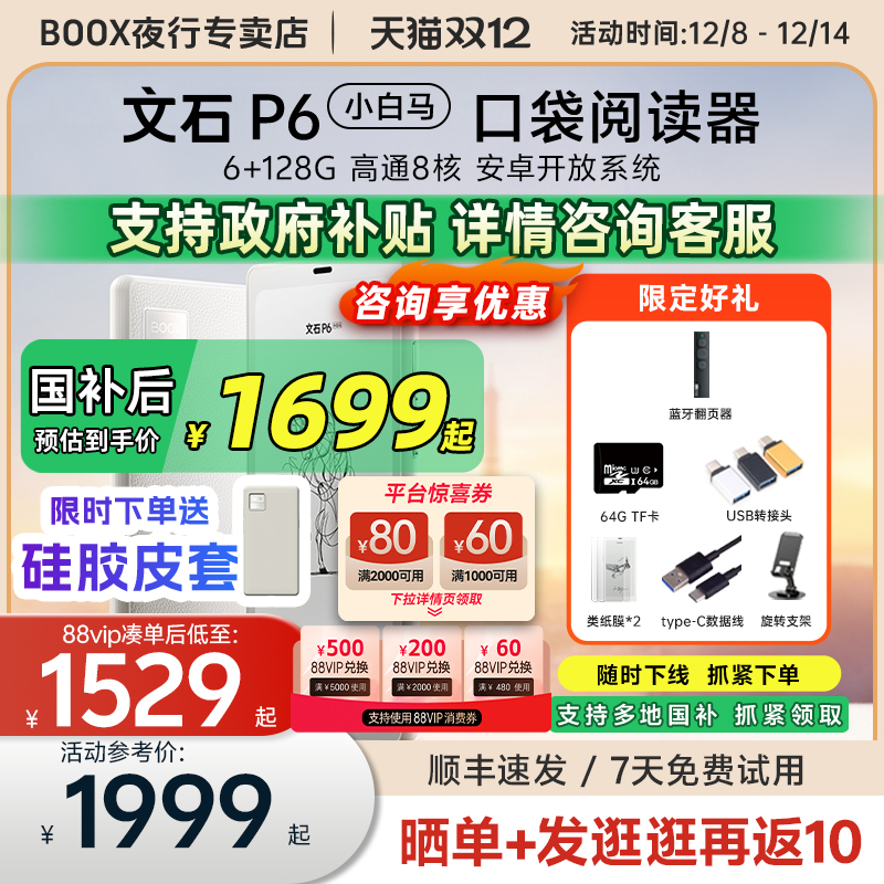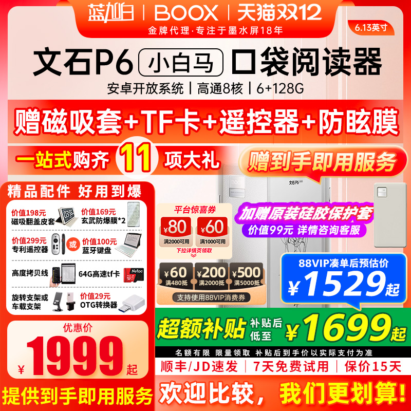 【支持15%国补 送原装皮套】文石BOOX P6 Pro小白马电子墨水屏阅读器电纸书p6pro护眼口袋阅览器手机款电子书
